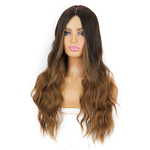 Lush Locks Ombre Blonde Wavy 22 inches Wigs for Women (Right Side Part-Dark Brown to Blonde)