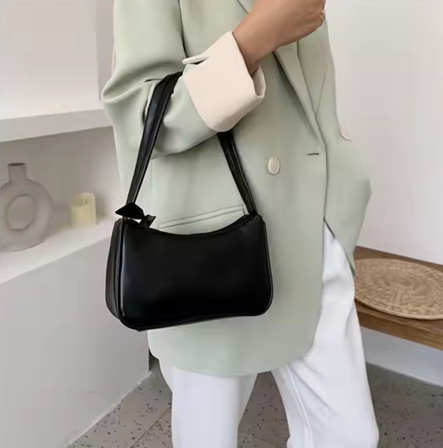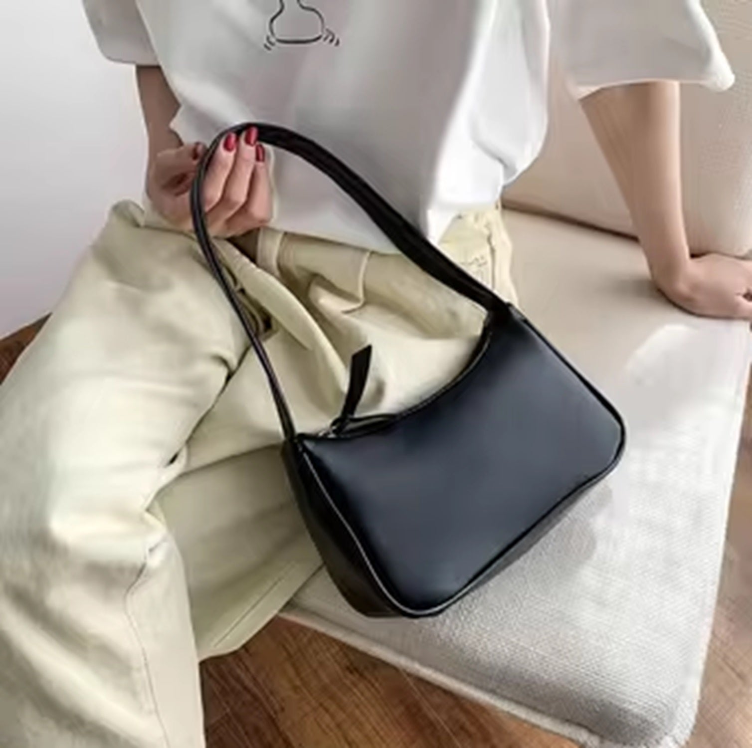 Luxerati Minimalist Black PU Leather Shoulder Bag – Sleek & Stylish Everyday Handbag